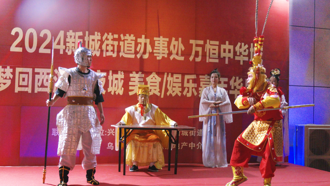 夜幕降临,华灯初上。西游演出将整个活动推向了高潮,唐僧、孙悟空等《西游记》经典人物依次登场,逼真的扮相和诙谐的台词赢得了观众的阵阵掌声,演员们通过舞蹈、歌曲、戏曲等多种艺术形式再现了《西游记》中精彩的故事情节,让现场观众沉浸式感受神话故事背后蕴含的文化内涵和历史底蕴。