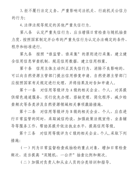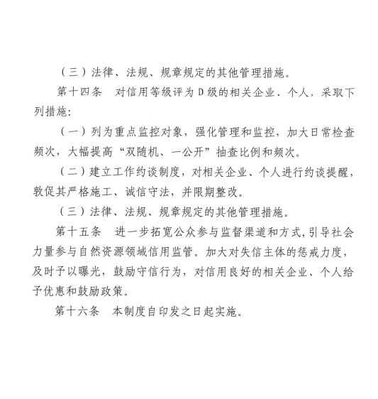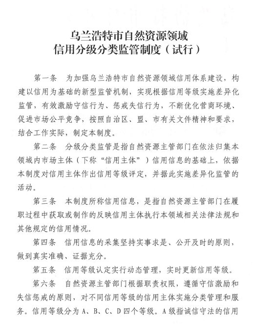 关于印发《乌兰浩特市自然资源领域信用分级分类监管制度(试行)》的通知