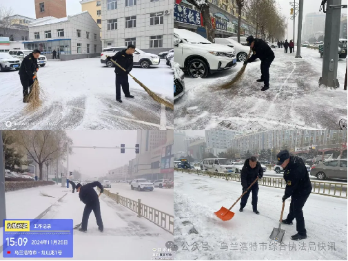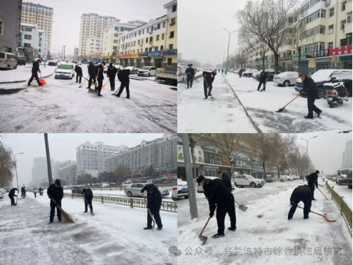 作为城市“美容师”,市城管执法局面对雪情,早安排、早部署,及时启动清雪预案,要求各临街企事业单位及商户按照“门前屋后五包”要求,开展责任范围内清雪除冰工作,与市市场监督管理局、各街道办事处进行沟通协调,共同通过商户微信群进行清雪动员,同时出动30辆执法宣传车,深入大街小巷,利用车载喇叭播放清雪通知,加大清雪除冰工作宣传力度。