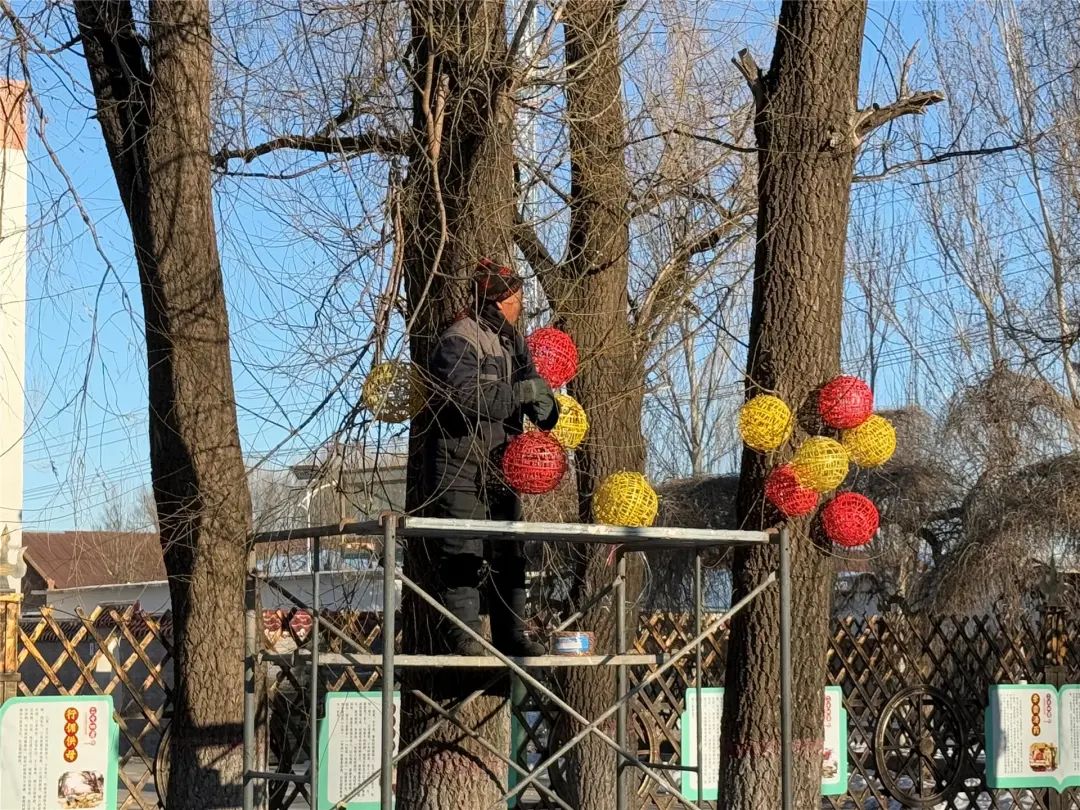 在乌兰浩特市义勒力特镇的街路两旁,施工人员正加班加点地进行彩灯悬挂及电线的安装收尾工作。经过他们连日来的辛勤努力,道路两侧已焕然一新,各式各样、绚丽夺目的彩灯将整条街路装点得宛如梦幻长廊。