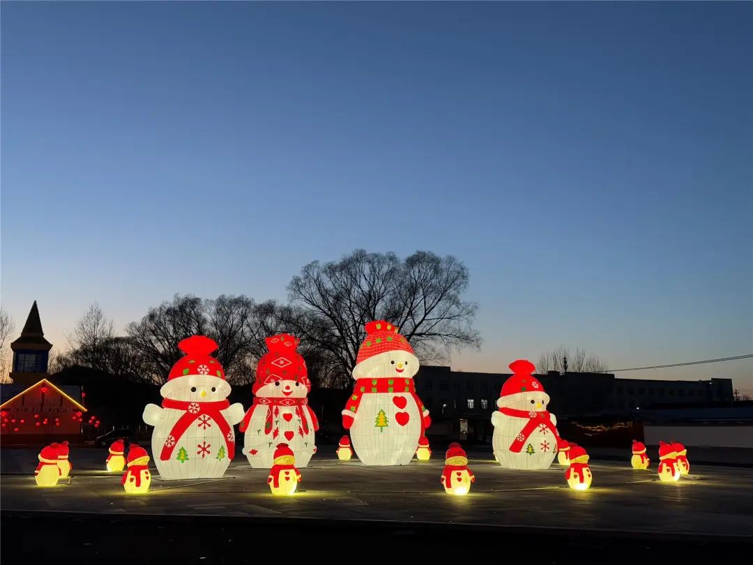 随着夜幕降临,义勒力特镇口袋公园仿佛被施了魔法,各式彩灯装饰灿若星辰、熠熠生辉。以雪人为主题的花灯格外夺目吸睛。花灯大小不一,错落有致地分布在口袋公园广场上,雪人们或威风凛凛,或俏皮可爱,与不远处街边树木上的彩色灯带交相辉映。流光溢彩的夜景,吸引游客纷纷驻足拍照打卡,定格美好瞬间。