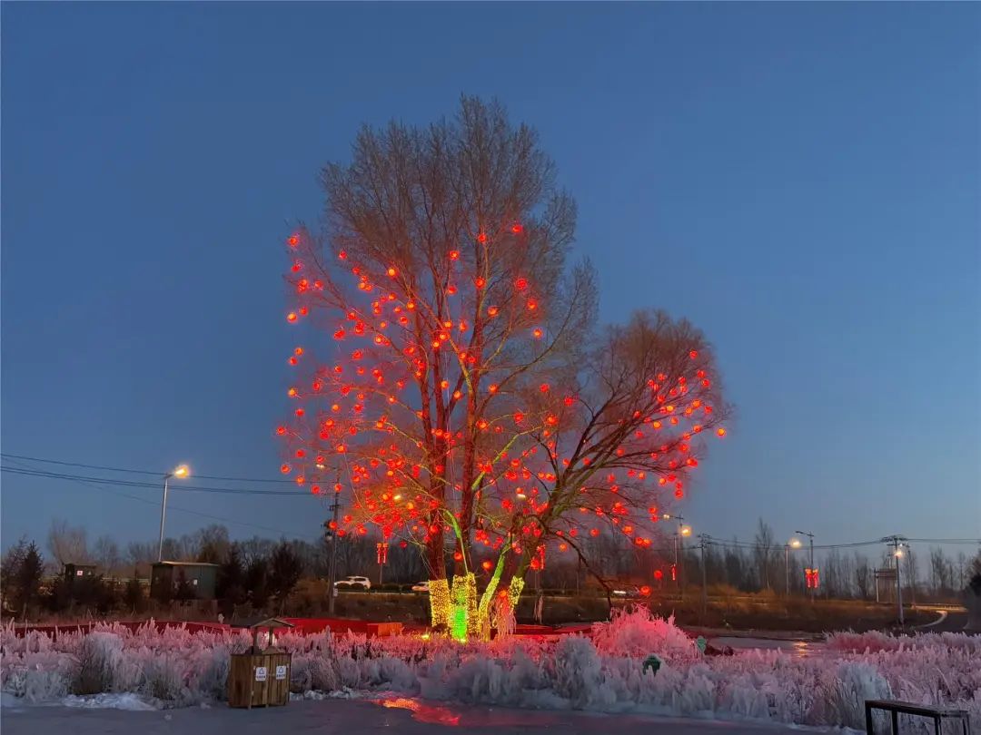义勒力特镇区域亮化、美化设计以立体景观为“点”、行道树亮化为“线”、植物组团亮化为“面”,精心打造亮化景观带,最大限度呈现出“点线衔接、组团呼应、风格统一”的特色景观效果,在为游客带来如梦似幻的游玩体验的同时,极大地提升了义勒力特镇作为“温暖雪乡”的知名度和吸引力。