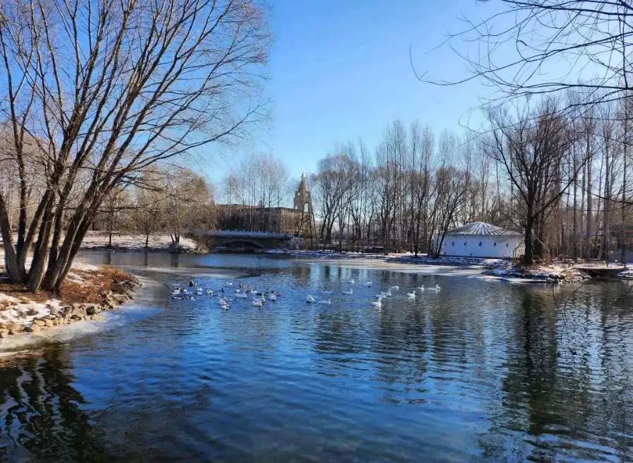 沿着艾琳河漫步前行,又是一番别样的景致。这条穿村而过的河流四季不冻,宛如一条灵动的丝带,串联起“一湖两河三区四亭五坝六桥”的美景,经过精心改造,已然形成了新的冬季旅游景观带,吸引着游客们纷至沓来,探寻冬日里的别样温暖。今年,义勒力特镇还启动了亮化工程,一到夜晚,五彩斑斓的灯光映照在乡村街道上,为游客们提供了绝佳的夜游环境。口袋公园处,以冰雪元素为主题的灯光秀璀璨夺目,设置的氛围灯打卡区更是吸引了众多游客前来拍照留念。