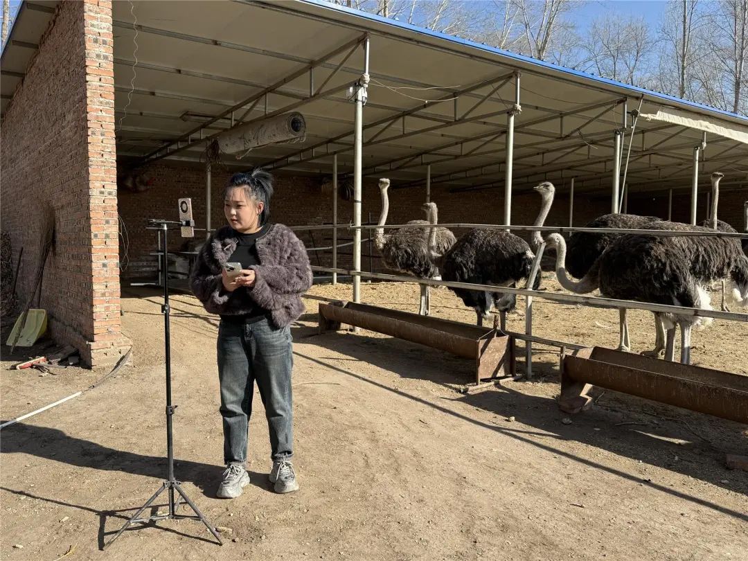 走进乌兰浩特市太本站于杰养殖场,一群身形矫健、毛色光亮的鸵鸟悠然自得,或踱步觅食,或好奇张望,模样甚是可爱。“欢迎新进老铁,咱家鸵鸟蛋是从3月20日开始孵化,5月份开始出壳。咱有需要鸵鸟苗、鸵鸟蛋的老铁啊,你可以直接来,可以上咱家场地直接参观考察……”养殖场负责人90后“鸵鸟妹”马玉坤正熟练地使用手机进行线上直播,热情地向屏幕另一端的观众介绍自家的鸵鸟。
