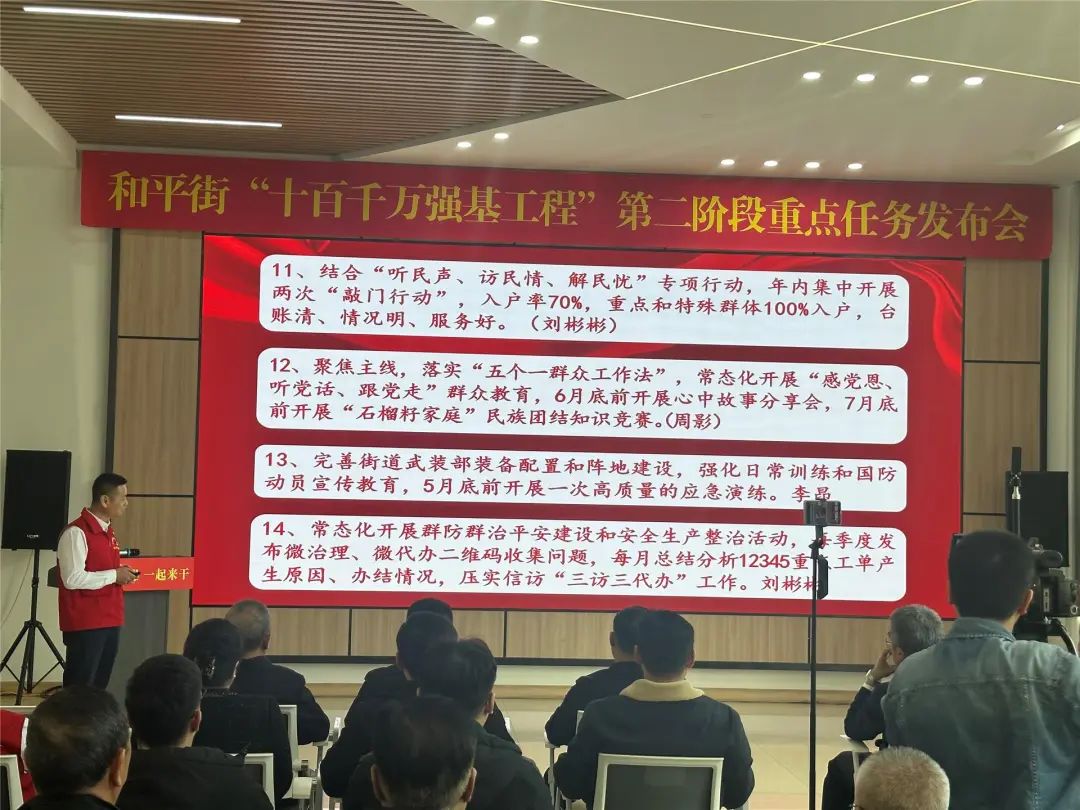为进一步推动基层治理精细化,提升为民服务水平,3月18日,乌兰浩特市和平街召开“十百千万强基工程”第二阶段重点任务发布会。