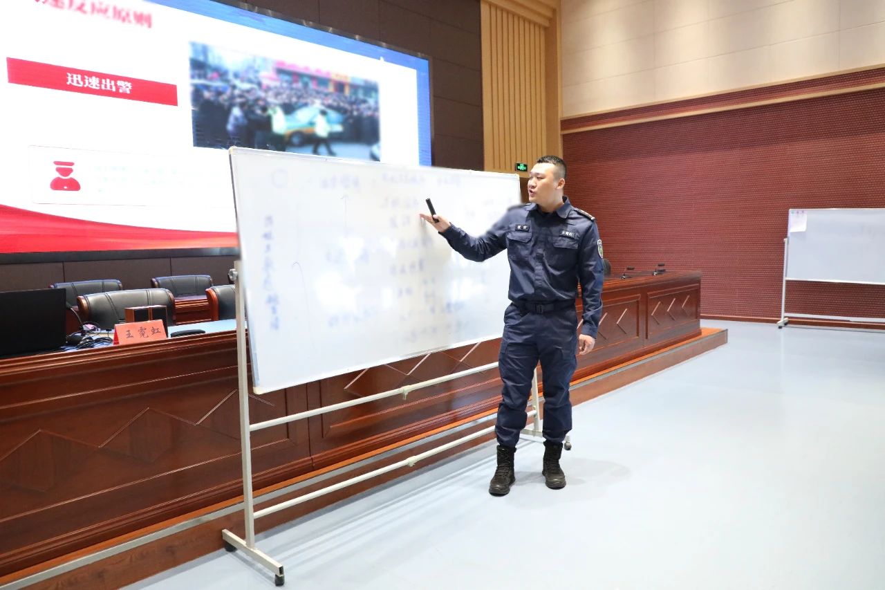 培训班特别邀请兴安盟公安局人民警察训练支队实战教官作专题培训。培训主要围绕公安常见的警情类型以及公安现场处置警情应该遵循的原则和处置规范流程方法作详细解读,培训内容贴合公安工作实际,实战教官采取理论讲解、案例解析、现场示范等教学方式,深入浅出地进行了一场实践性和可操作性强的实战化培训。