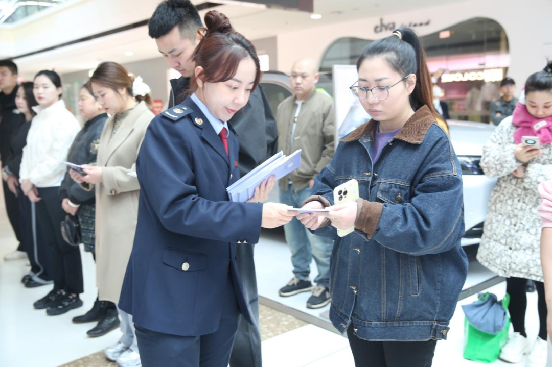 春风如约至,税宣正当时。在第34个全国税收宣传月期间,国家税务总局乌兰浩特市税务局紧紧围绕“税收法治公平”主题,主动靠前服务,利用商场人流量大、辐射面广的特点,组织税收宣传“先锋队”联合红城法制轻骑兵,走进万达广场,将税惠“春风”吹进商圈,助力商户向“新”而行。