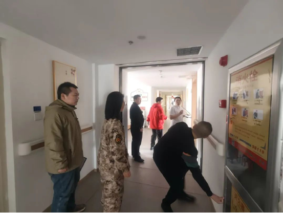 为切实筑牢养老服务领域安全防线,2025年4月11日上午,都林街民政联合安监部门、武装部门、辖区派出所及社区工作人员,对都林辖区内三家养老机构开展消防安全"扫雷行动"。重点核查消防设施、应急通道等风险点并商议整改措施、内容。