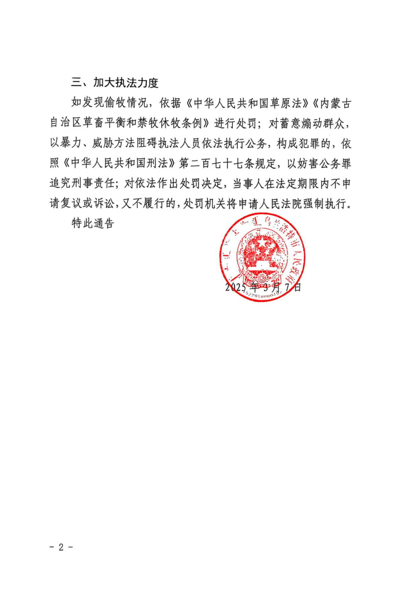 乌兰浩特市人民政府关于进一步加强禁牧工作的通告