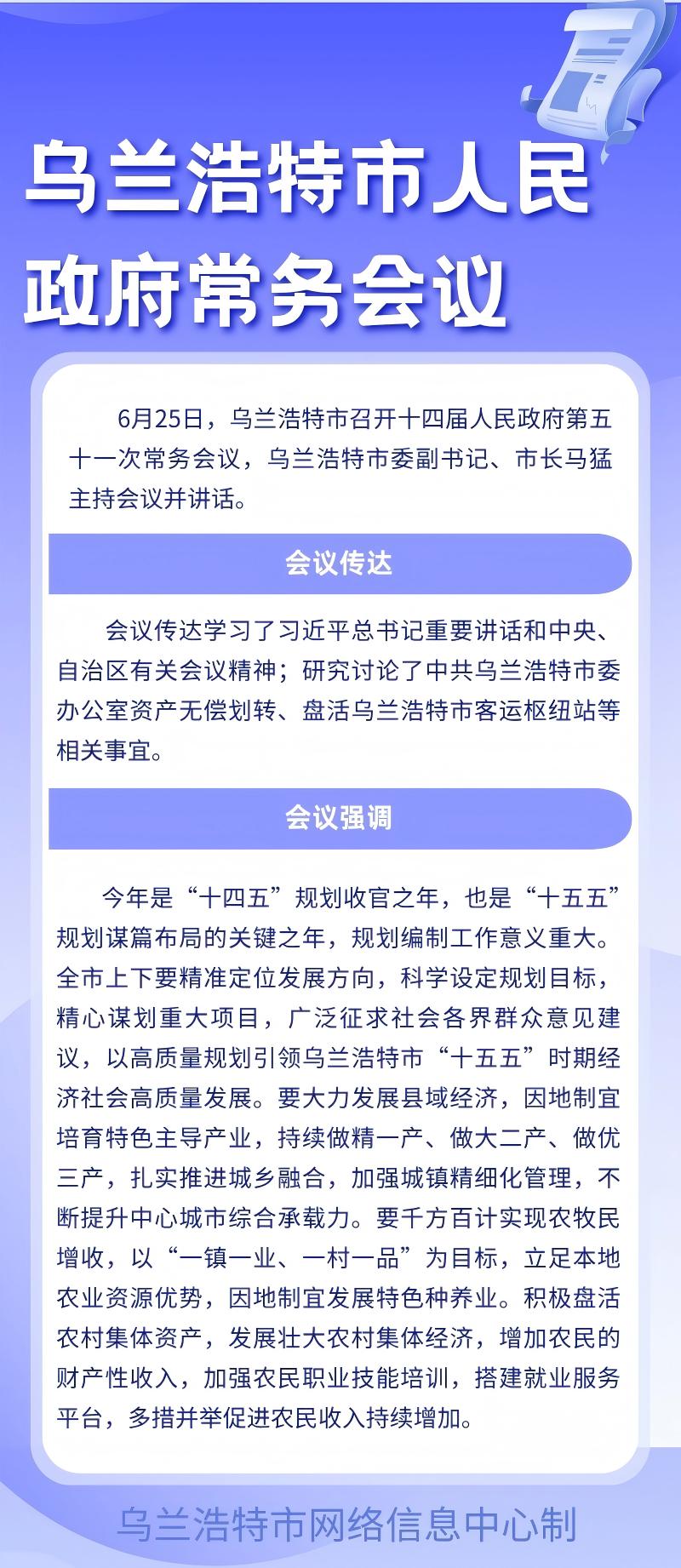 一图读懂:乌兰浩特市十四届人民政府第五十一次常务会议