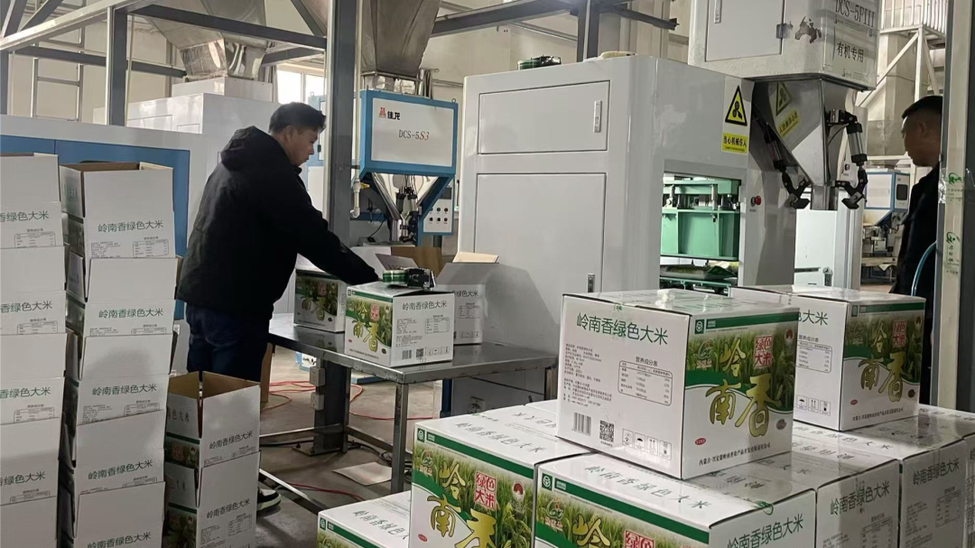 在兴安盟岭南香农产品开发有限责任公司的生产车间内,洁白晶莹的大米从生产线上源源不断地流出,工人们正忙着检查大米的品质、操作着打包设备进行包装、封口、贴标,确保每一袋大米都以最佳的状态呈现在消费者面前。