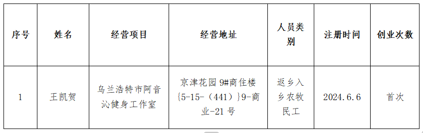 根据《关于进一步做好创业扶持政策落实工作的通知》(兴人社办发〔2023〕162号)和《内蒙古自治区财政厅人力资源和社会保障厅关于转发就业补助资金管理办法的通知》(内财社〔2024〕373号)文件,现将拟补贴人员进行公示,拟每人发放一次性创业补贴10000元,公示期为5个工作日,时间从2025年8月6日至8月12日。