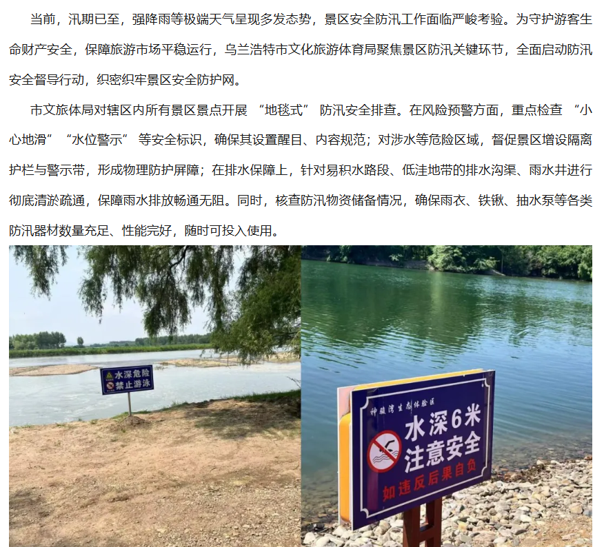 乌兰浩特市文化旅游体育局全力做好景区防汛工作