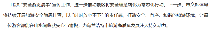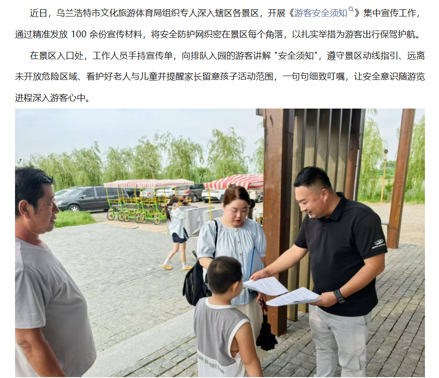 乌兰浩特市文化旅游体育局开展《游客安全须知》集中宣传工作