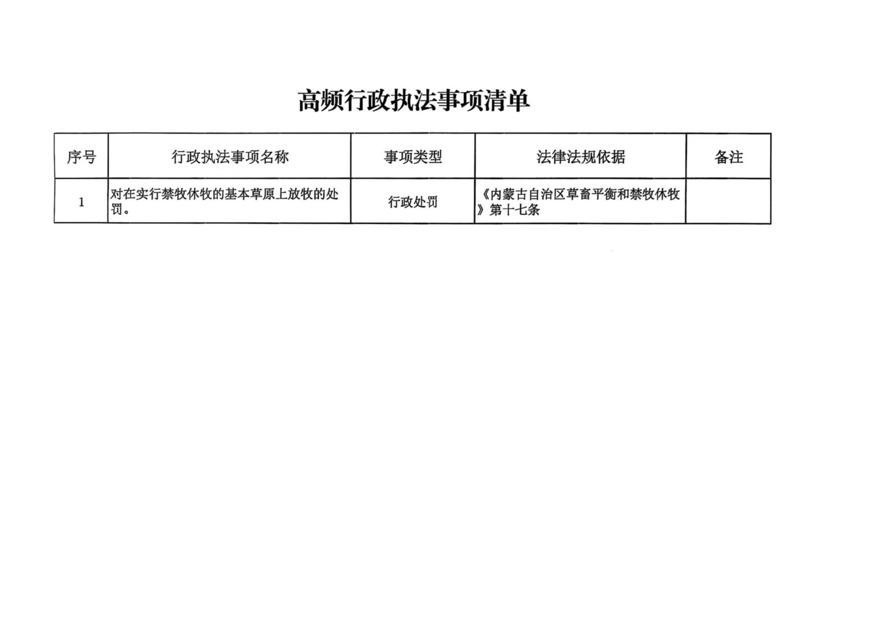 高频行政执法事项清单