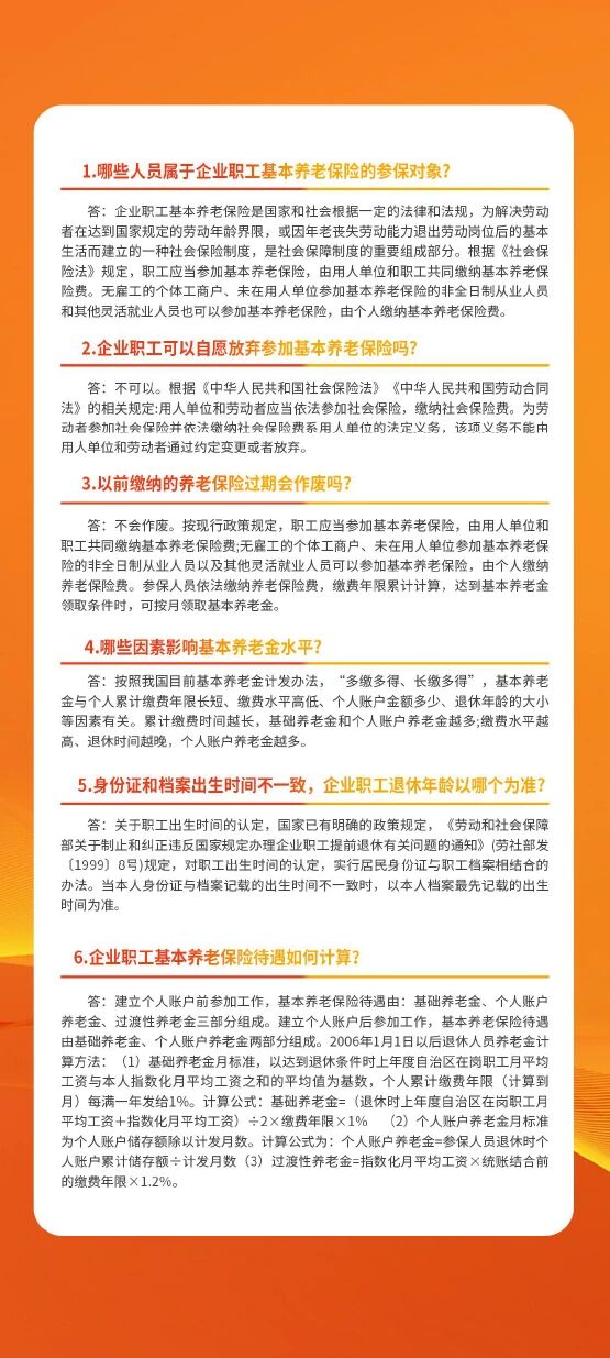 社保服务进万家——企业职工基本养老保险政策问答