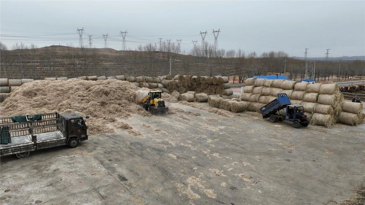 一个个忙碌的加工现场,一座座坚实的草料垛,都是葛根庙镇饲草储备工作扎实推进的生动写照。据了解,目前全镇除现代牧业以外共有牛羊养殖户495户,存栏牛6760头、羊30220只,已累计储备饲草28685吨。充足的饲草不仅筑牢了牲畜越冬的“生命线”,更有效提振了养殖户的发展信心,为乌兰浩特市葛根庙镇畜牧业高质量发展提供了坚实的物资保障。