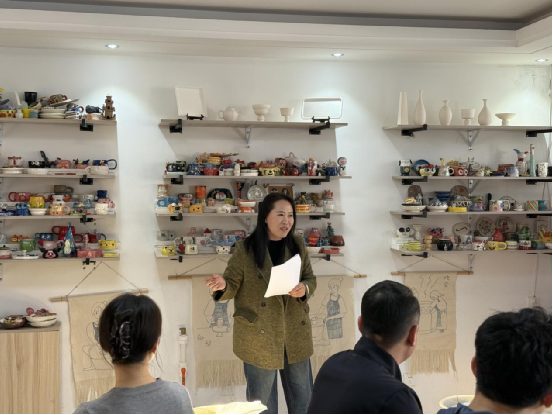 随后,由陶艺工坊负责人为大家讲解了陶瓷文化的历史与技艺,并现场演示制作步骤。党员干部们纷纷化身“陶艺学徒”,揉泥、塑形、雕琢,一丝不苟。