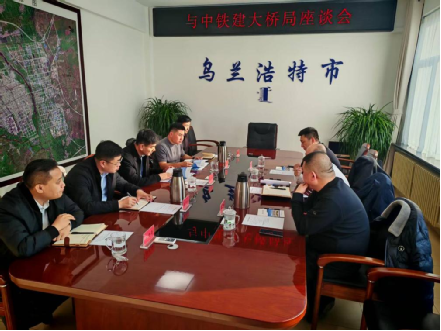10月29日,市政府副市长崔艳波在乌兰浩特市主持召开与中铁建大桥局招商洽谈会,与中铁建大桥局经营部总经理孙义、经营部副总经理李世峰、总经理助理侯孝兵就深化项目建设合作展开深入交流。市发改委、住建局、交通局一同参加。