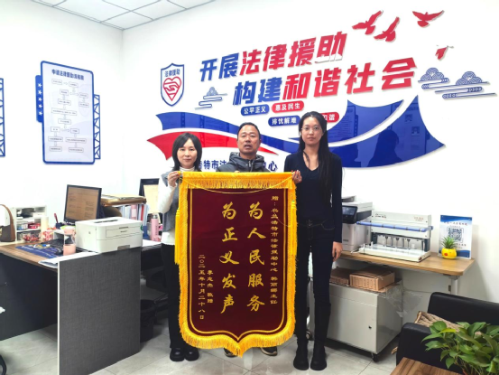 乌兰浩特市法律援助中心及援助律师获赠锦旗喜报