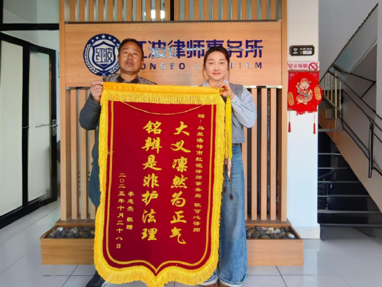 10月28日,受援人李某手持一面绣有“为人民服务,为正义发声”的鲜红锦旗,专程来到乌兰浩特市法律援助中心,紧紧握住中心韩主任的手再三致谢,用最质朴的方式,向中心全体工作人员和援助律师送上最真挚的感谢。