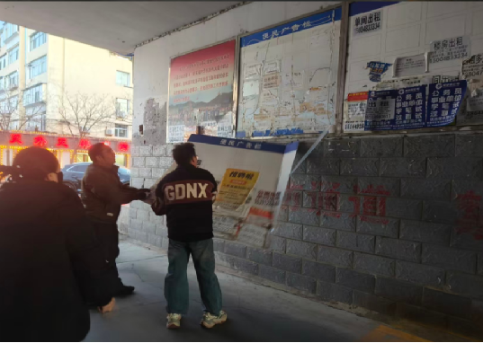 1月7日下午,和平街红云社区工作人员开展了小区安全巡查工作。巡查期间,工作人员发现邮政小区便民广告牌板面严重脱落,超过一半板面摇摇欲坠,对居民通行安全构成明显隐患。社区工作人员迅速响应,第一时间进行现场处置,对脱落部分进行加固与清理,及时排除了安全隐患,确保了小区居民出入平安。此次巡查与快速处置,体现了社区对居民安全的高度重视,有效预防了可能发生的意外伤害,进一步增强了社区居民的安全感和归属感,营造了安全、稳定、和谐的居住环境。
