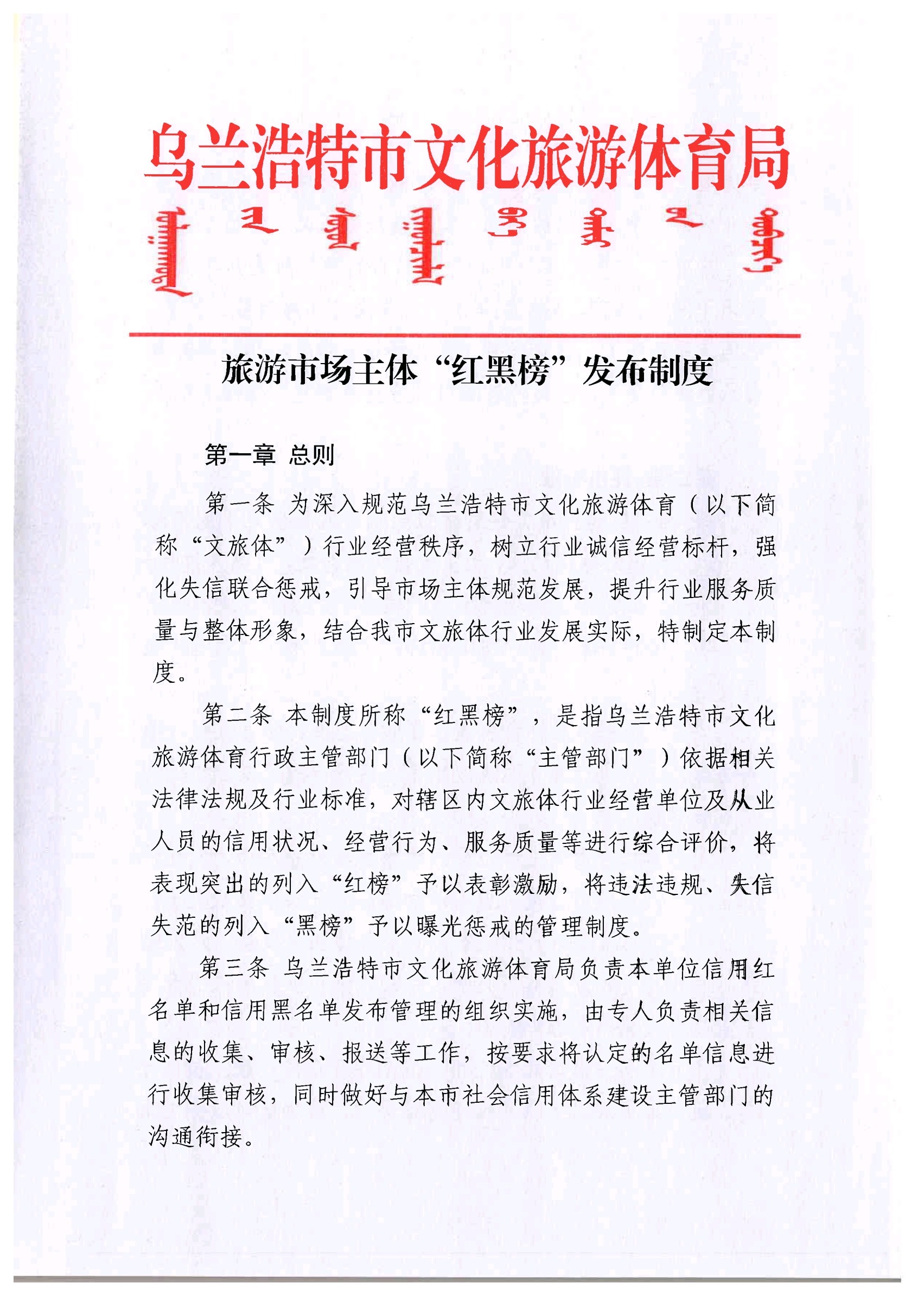 旅游市场主体“红黑榜”发布制度
