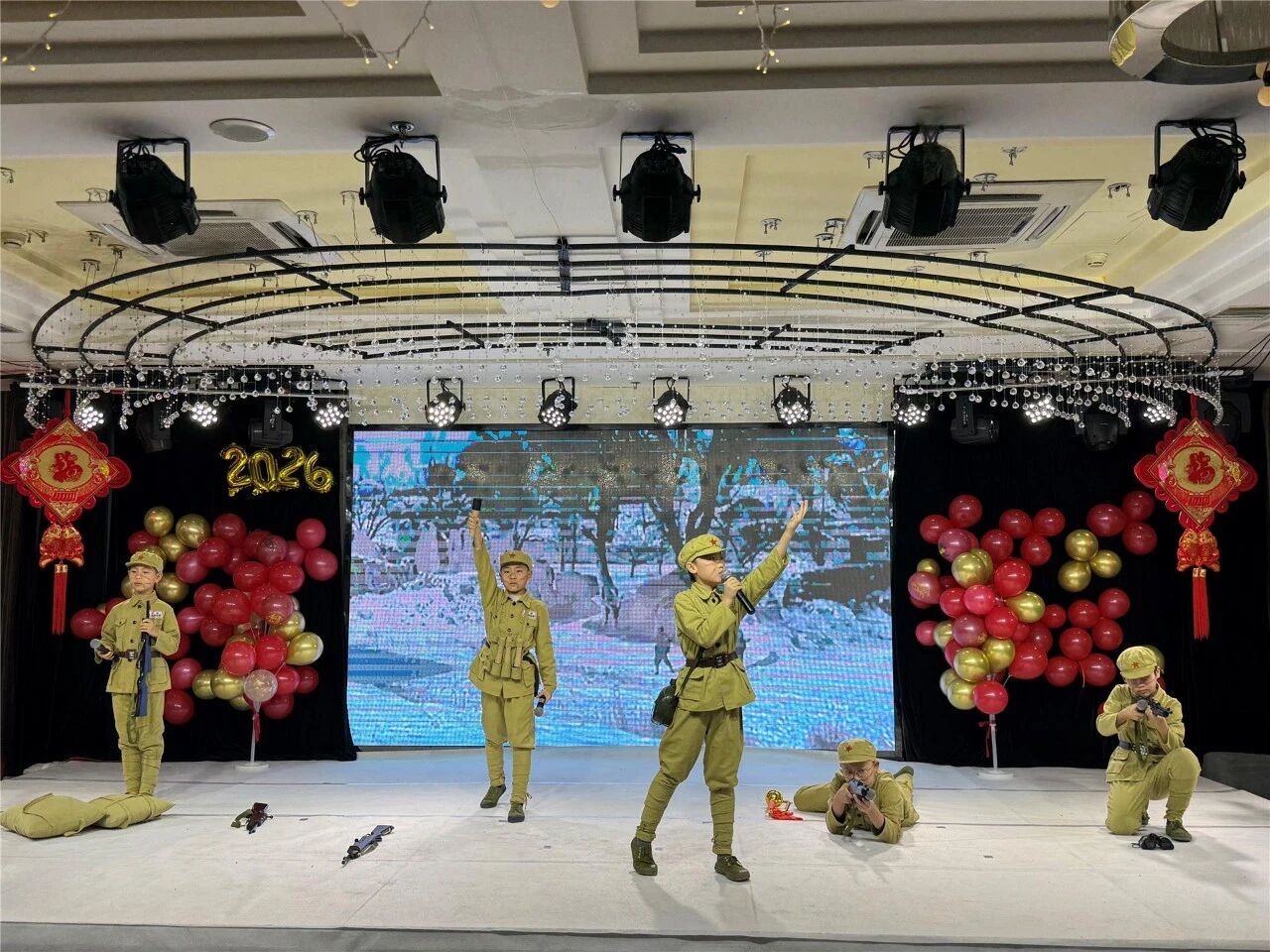 联欢会在热闹的舞狮表演中拉开帷幕,彩狮腾跃、节奏激昂,瞬间点燃了全场的喜庆气氛。少儿情景朗诵《长津湖》以童真赤诚再现了志愿军战士的钢铁意志与无畏牺牲;二重唱《如愿》旋律深情而充满力量,唱出了对先辈的缅怀和对国泰民安的祈愿;快板《退役军人有保障》用明快的节奏,清晰解读了退役军人优抚安置政策,收获了阵阵掌声;宣讲《戎装初心 不负荣光》深情讲述了优秀退役军人的点滴故事,字字铿锵,将现场氛围推向高潮。活动中,相关领导为退役军人模范代表颁发了《戎耀北疆——退役军人风采录》,向他们的奉献与坚守致以崇高的敬意。