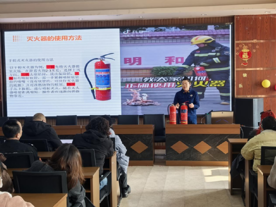 培训中,消防宣讲人员结合近年来典型火灾案例,通过真实事故场景和警示画面,深刻剖析火灾发生的原因、危害性及严重后果,使大家直观认识到消防安全的重要性。围绕日常防火巡查、火灾报警流程、火场逃生技巧、消防器材使用等关键内容,重点讲解了电器安全使用、燃气隐患排查、电动车规范停放、楼道清理禁堆杂物等日常防火要点;详细示范了“弯腰、捂鼻、低姿前行、不乘坐电梯”等正确逃生方法,及时纠正盲目跳楼、贪恋财物等危险逃生行为。