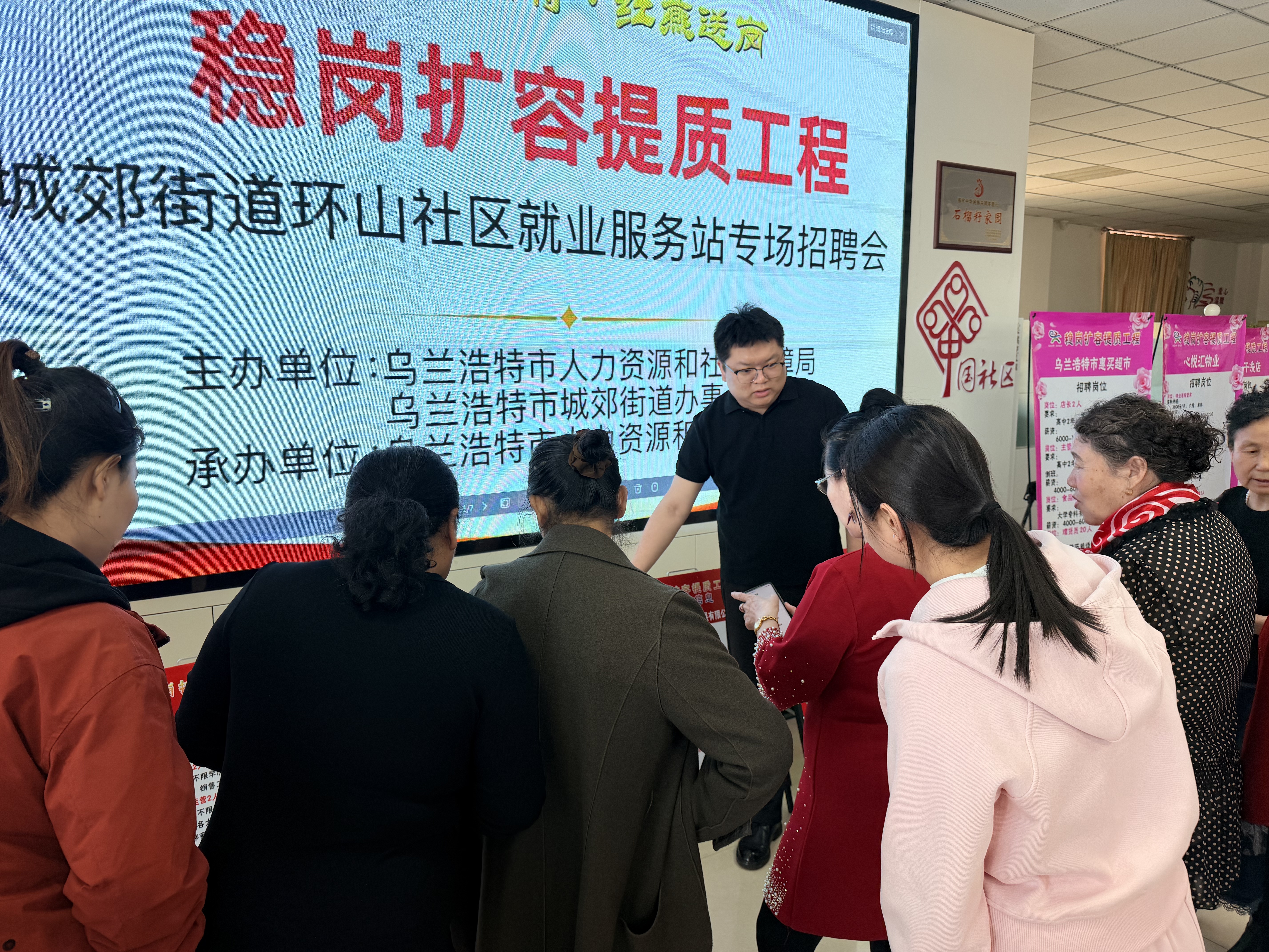 就业是民生之本,为进一步促进辖区居民高质量就业,向用工企业和求职人员提供快捷便利的信息交流平台,积极推进“五个一”群众工作法,4月7日上午,城郊街道办事处环山社区联合乌兰浩特市人力资源和社会保障局、乌兰浩特市人力资源和就业服务中心开展“春风送岗进社区,就业服务暖民心”招聘活动,切实打通了社区就业服务“最后一公里”。活动聚焦辖区高校毕业生、失业人员、低保家庭劳动力、残疾人等重点就业群体,针对性筛选涵盖家政服务、物业管理、商超零售、餐饮服务、行政文员、技工操作等多个领域的就业岗位,全力满足各类求职者的就业需求。