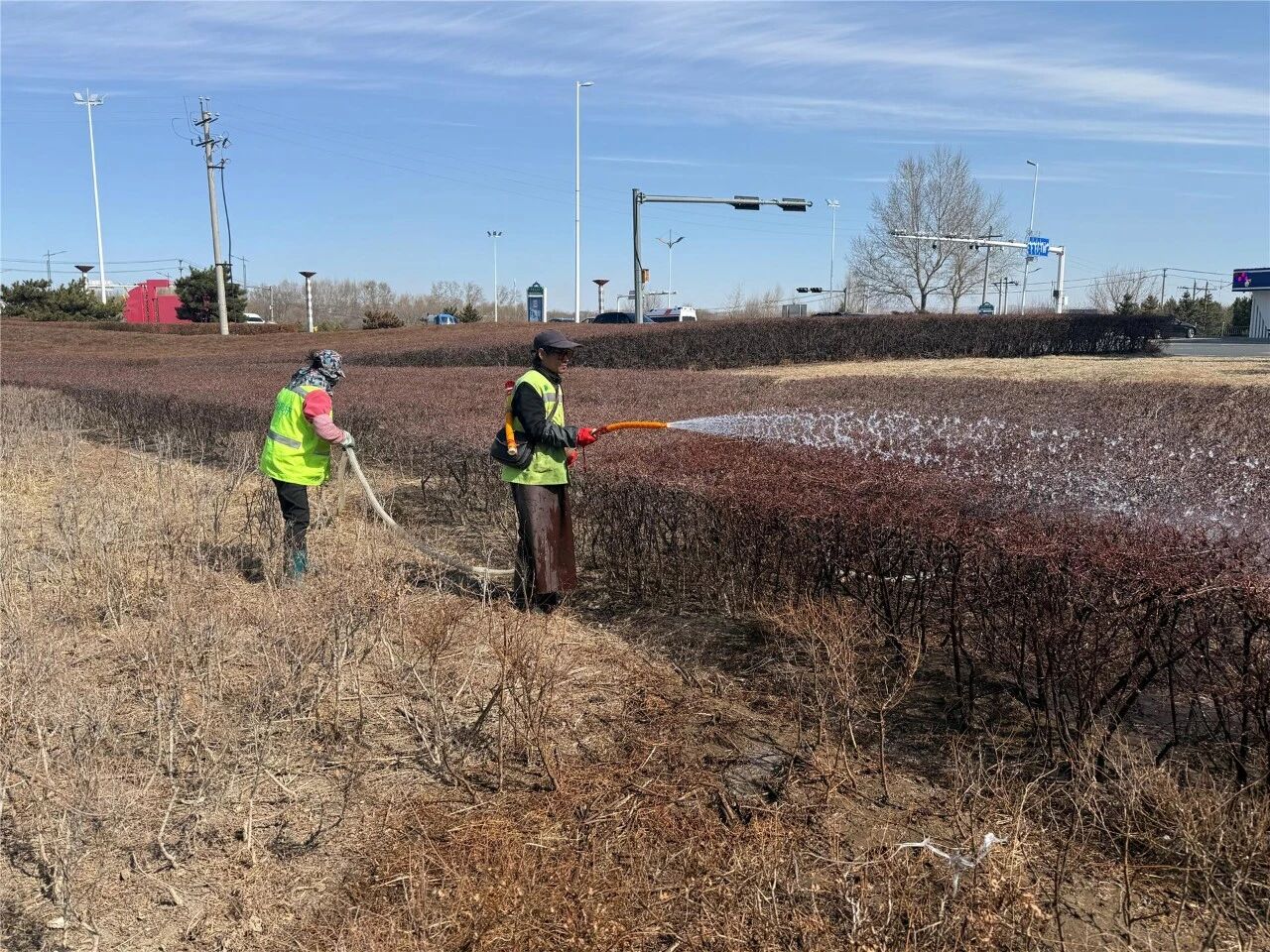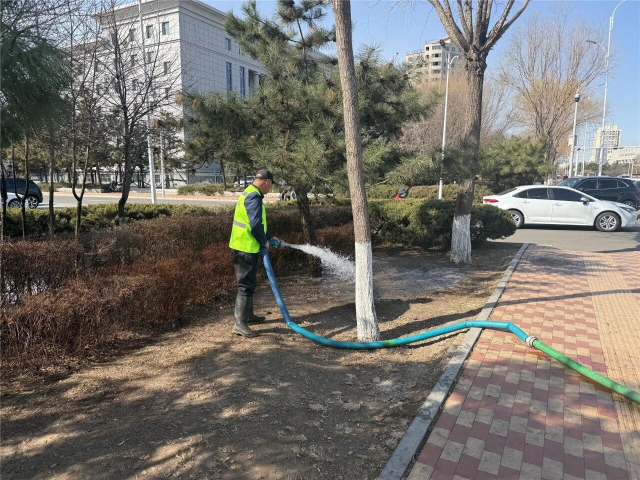 浇灌“返青水”可以有效提高地温,保护植物根部,增强植物萌芽能力,对苗木的存活、生长起到至关重要的作用。为切实提高浇灌质量,乌兰浩特市园林绿化服务中心科学调度、统筹安排,采取人工浇灌与喷灌相结合的方式,最大限度提升浇灌实效。截至目前,全市城区已完成“返青水”浇灌面积约700万平方米,有效提高了苗木成活率,为全年绿化养护工作打下了坚实基础。
