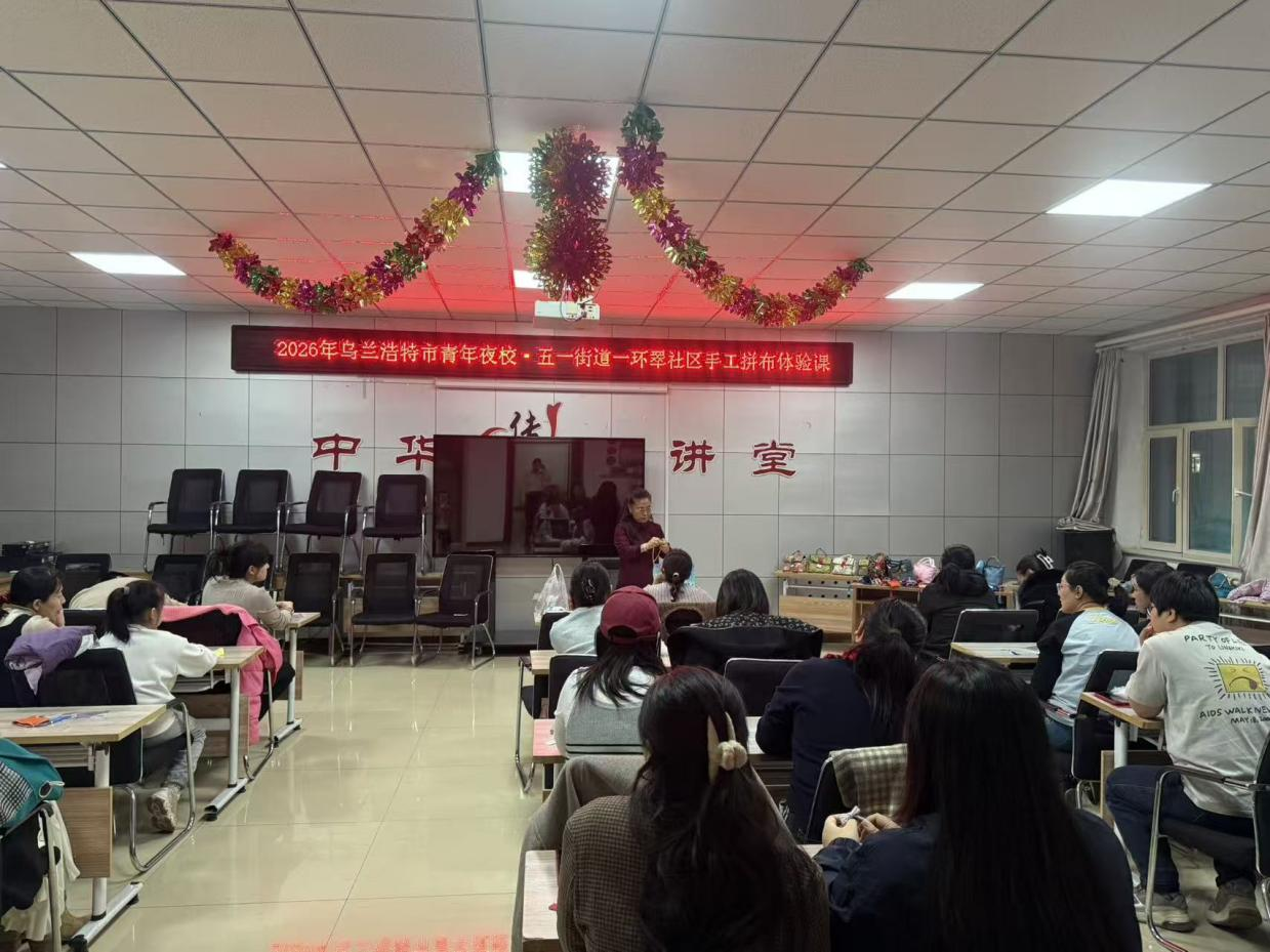 为传承中华优秀传统文化,丰富青年精神文化生活,2026年3月25—26日,由乌兰浩特市团委牵头,五一街道团工委指导、一环翠社区承办的青年夜校手工拼布体验课,在社区活动室顺利开课。青年们齐聚一堂,沉浸式体验非遗手工拼布技艺,在一针一线的穿梭中,感受传统非遗技艺的独特魅力,让古老手艺在青春指尖焕发新生。