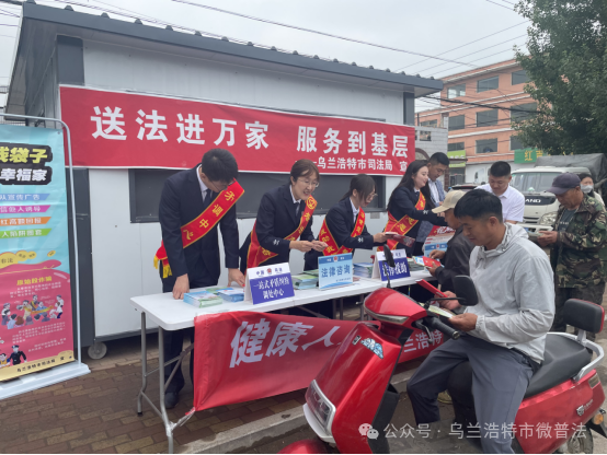 为进一步加强乡村法治宣传教育,满足老百姓对法律知识的需求,提高其法治意识和法治素养,近日,乌兰浩特市司法局普法志愿队以“逢十”赶集日为契机,在斯力很现代农业园区开展“送法进万家 服务到基层”主题普法进集市宣传活动。