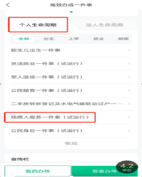2. 从下面当中的“个人生命周期”选择办理“残疾人服务一件事”即可办理。