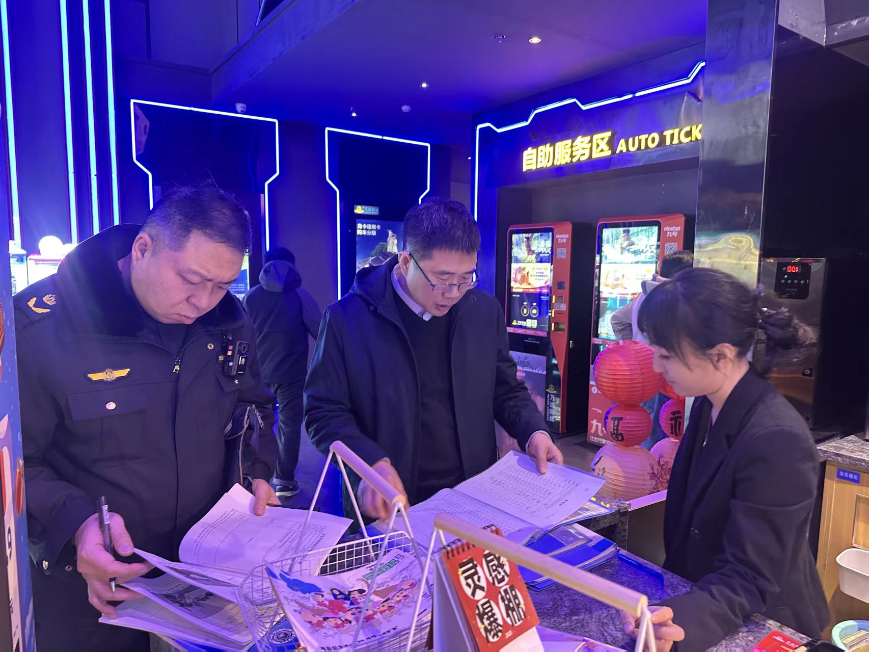 检查组一行先后来到辖区电影院、书店、印刷厂等6家文化经营场所,通过实地查看、查阅资料、询问交流等方式,重点对各经营场所消防设施、应急预案、安全生产防范措施落实等情况进行全面检查,严格审查出版物经营单位证照是否齐全、印刷企业五项制度是否落实,书店进货渠道是否正规,是否存在销售侵权盗版、淫秽色情、暴力恐吓等损害未成年人身心健康的出版物。