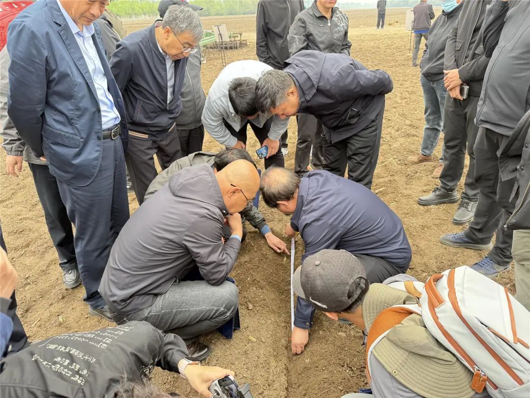 与会人员现场观摩了来自潍柴雷沃智慧农业科技股份有限公司、河北农哈哈机械集团有限公司、乌兰浩特市顺源农牧机械制造有限公司等单位研发的8种专用播种机机械播种使用情况。与会专家还深入田间拨开土层,对播种效果仔细观察测量,对未来高性能播种机的研发提出了技术改进意见。