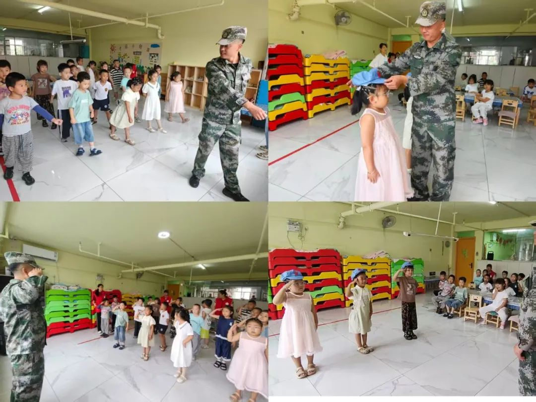 活动伊始,武装部教官生动讲解军旗、军徽含义,教官分享的军旅故事展现了军人保家卫国的坚定信念。随后的军事知识问答环节,小朋友们踊跃抢答,在互动中加深了对国防知识的了解。爱奕桥幼儿园的孩子们与教官共同唱响《祖国不会忘记我》,稚嫩的童声与铿锵的军人嗓音交织,让红色种子在孩子们心中生根发芽。