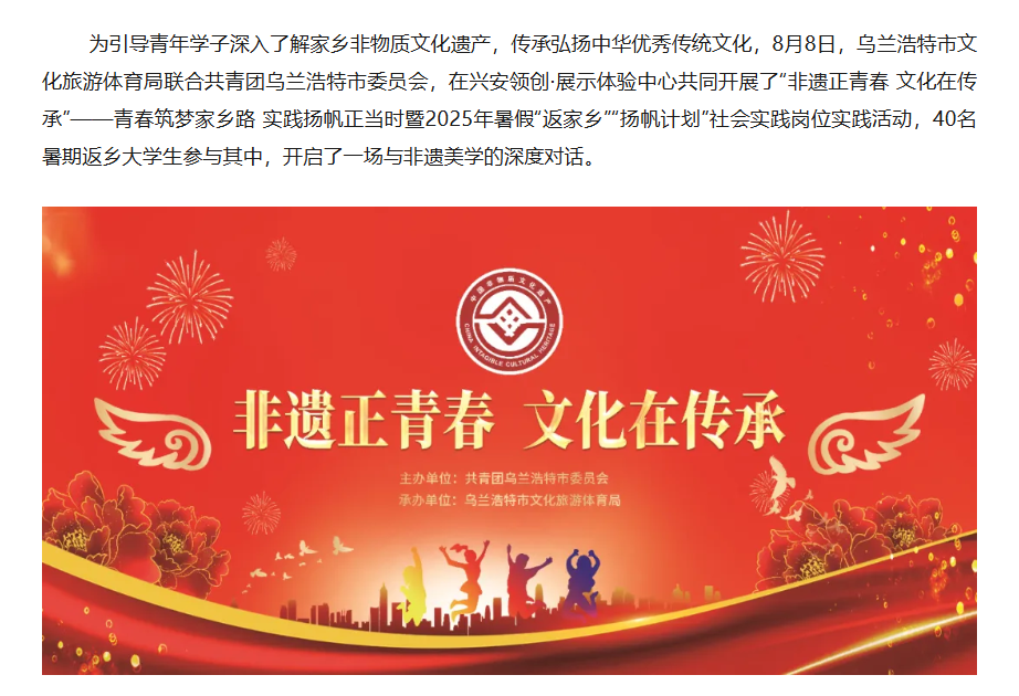 乌兰浩特市文旅体局开展暑期实践活动,让返乡大学生与非遗文化“双向奔赴”