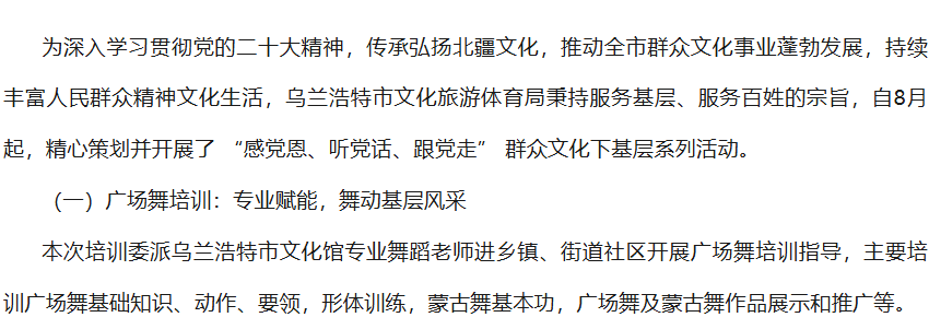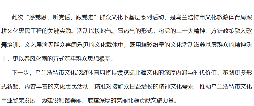 “感党恩、听党话、跟党走 ”乌兰浩特市文化旅游体育局开展群众文化下基层系列活动