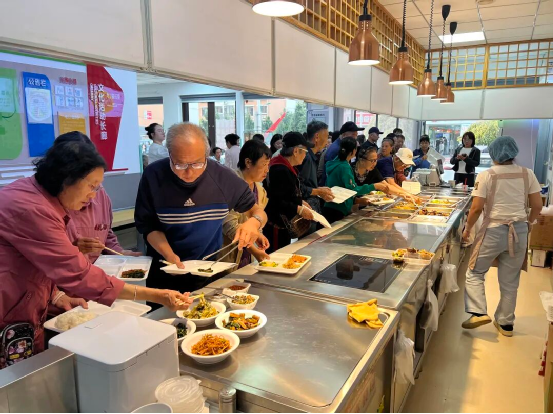 伴着温馨的氛围,工作人员引导老人们签到、入座,一杯杯热气腾腾的开水很快递到了老人手中。餐桌上,晚餐早已准备妥当:软嫩入味的热菜、营养搭配的主食,还有一碗碗冒着热气的汤品,每一口都软糯好嚼、暖胃又暖心。而对于那些行动不便的老人,工作人员也没有忽略——他们提着打包好的餐食与月饼,挨家挨户上门送达,让这份浓浓的关爱,顺着温热的食物传递到每一位老人心里。