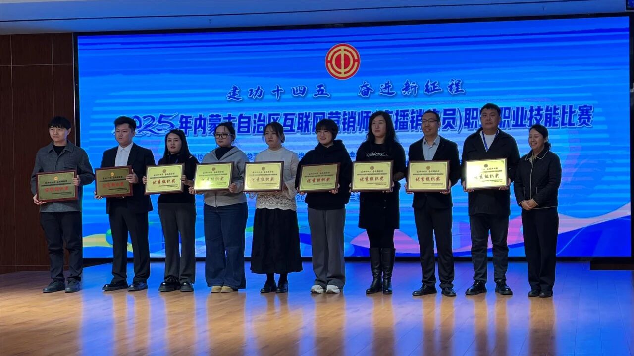 开幕式上,全体人员奏唱国歌,裁判员代表与运动员代表依次宣誓,比赛正式开始。比赛现场,参赛选手们紧盯屏幕、沉着作答,展现扎实的专业知识储备。在直播实操演练中,选手们围绕内蒙古特色产品展开创意构思,从产品卖点挖掘到互动话术编排,以生动的讲解呈现真实的直播场景,充分展现互联网营销师的职业素养与实战能力。经过激烈比拼,比赛最终决出前十名并现场颁发荣誉证书与奖品。