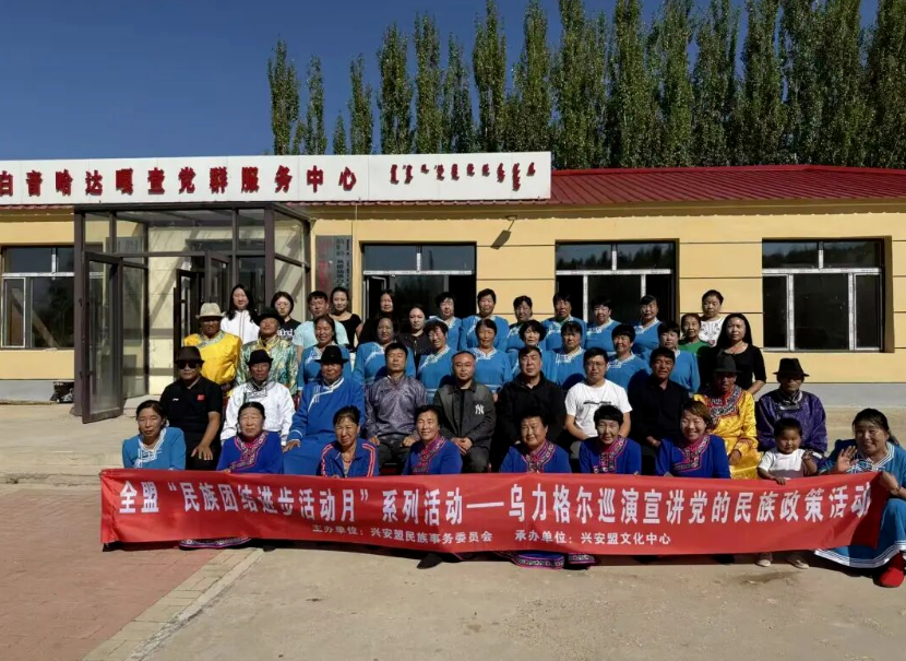 除足球联赛外,其他活动的非遗呈现同样精彩:在白音塔拉嘎查党群服务中心,市文旅体局联合兴安盟民族事务委员会、兴安盟文化旅游体育局等多家部门共同承办全盟“民族团结进步活动月”系列活动——乌力格尔巡演宣讲党的民族政策活动。现场展演环节,市文旅体局统筹协调,非遗传承人与群众共献精彩,自治区级非遗传承人包双成演乌力格尔《元帅出征》,以史诗再现各民族共同抗争历程,尽显传统曲艺魅力;额尔敦础古拉演好来宝《歌颂党》与民歌《心帅》,将民族政策化作动听旋律,诠释“各民族像石榴籽一样紧紧抱在一起”,赢得现场观众阵阵掌声,让民族团结理念随非遗深入人心。