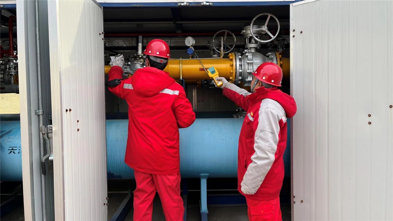 除了液化气供应环节,管道燃气的安全保障同样重要。在兴安盟中油金鸿燃气有限公司气源站内,维修人员正用专业工具检测调压柜的压力参数,并不时用抹布擦拭设备表面的灰尘,确保设备始终处于最佳运行状态。该公司承担着全市2.4万户居民及100余家工商业用户的管道燃气供应任务,其设备运行稳定性直接影响城市燃气供应安全。