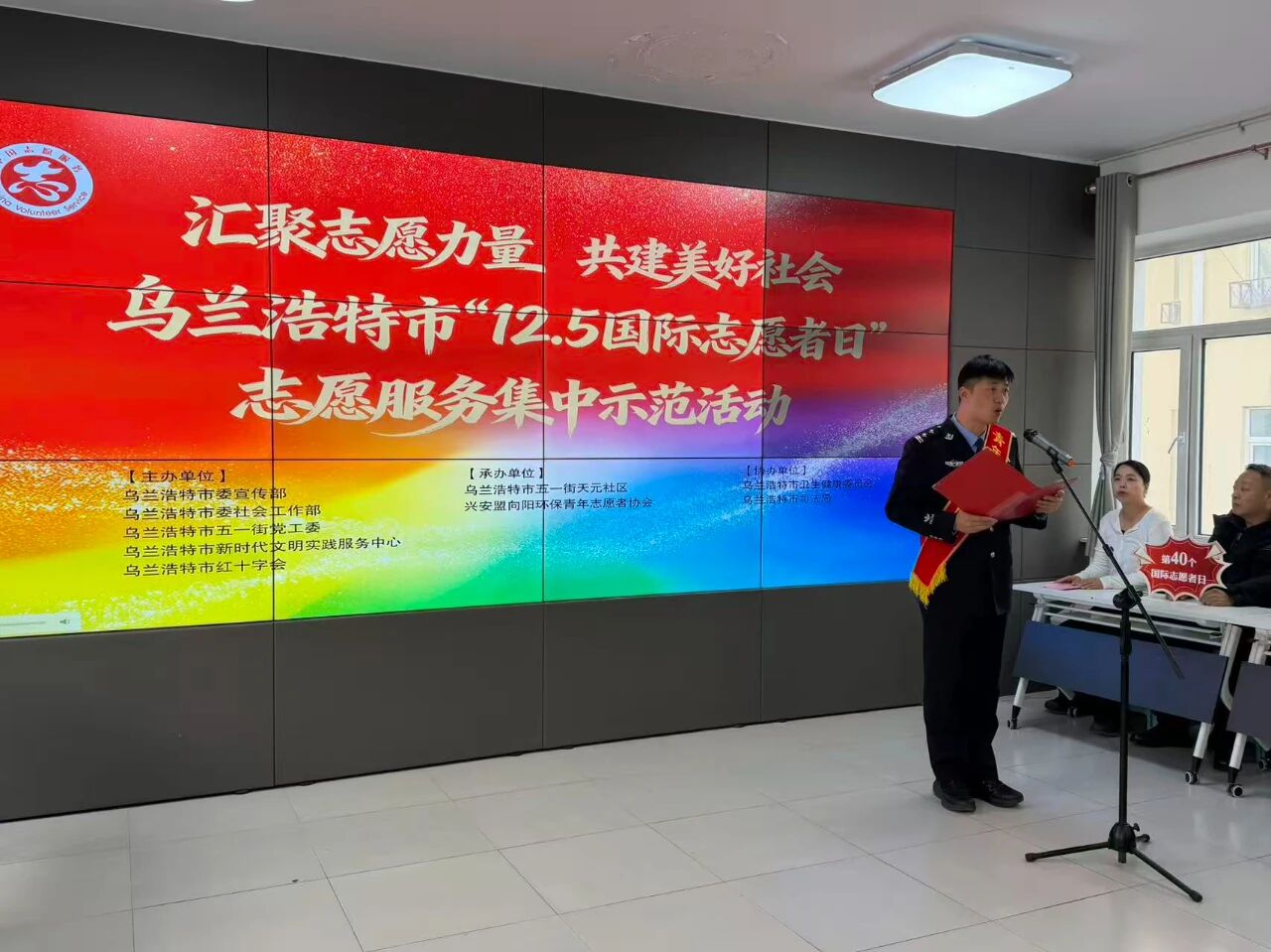 在第40个国际志愿者日,乌兰浩特市“汇聚志愿力量、共建美好社会”集中示范活动在五一街天元社区温情启幕。