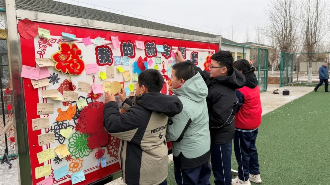 在乌兰浩特市太本站学校操场上的“心愿打卡点”前,同学们有序驻足,将一张张精心书写的心愿卡郑重粘贴在“心愿板”上,有的写下“新学期好好学习”的心愿,有的许下“争做红色好少年”的誓言,小小的卡片上承载着孩子们的成长期盼与赤子初心。操场上的趣味接力赛热火朝天,尽显少年活力。情绪涂鸦墙与阅读区让孩子们在热闹与书香中迎接新学期。