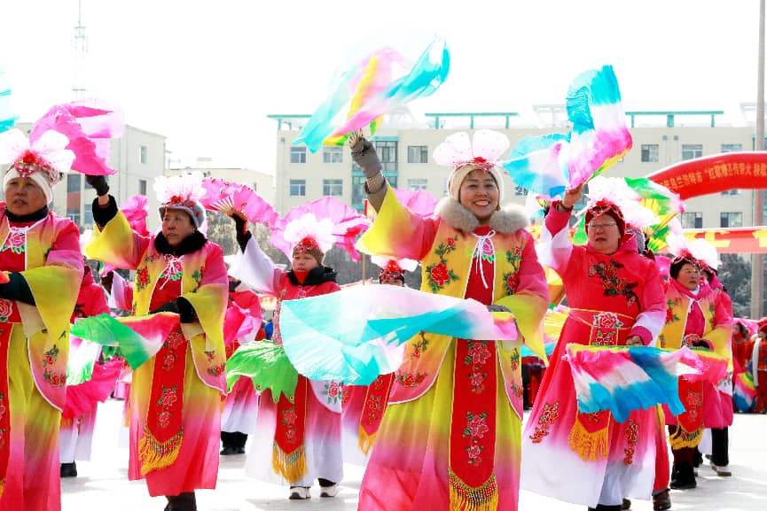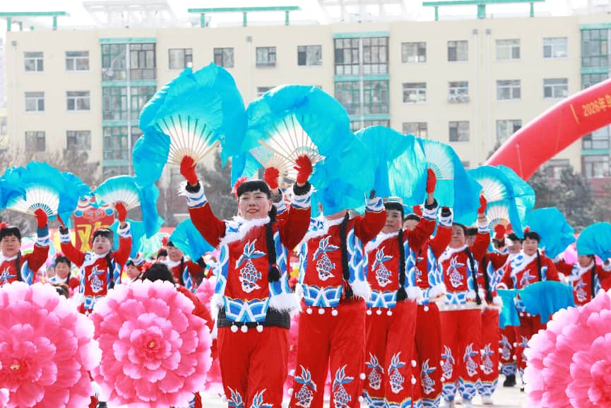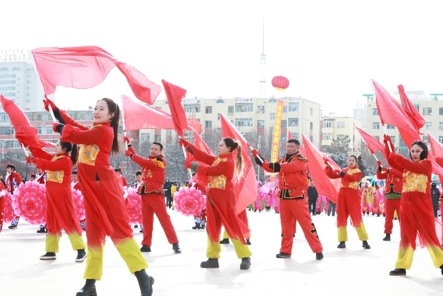 开幕式表演结束后,来自各镇(园区)、街道办事处的11支秧歌表演队集体展演《喜庆丰收年》,红绸飞扬、舞步欢腾,声声锣鼓敲出新春喜悦,步步欢舞扭出美好期盼,充分展现了红城人民丰收的喜悦与对美好生活的向往。
