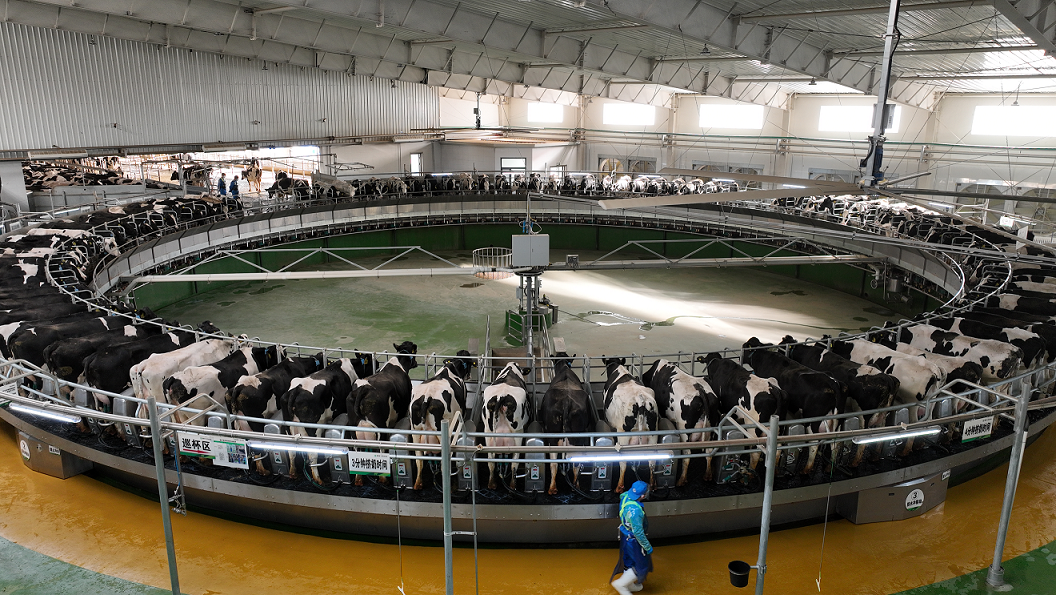 “我们坚持以标准化养殖为基础、智能化技术为核心,打造全流程智慧养殖体系。我们通过精准饲喂、智能环境控制和粪污资源化利用,不仅让奶牛的单产和鲜奶品质稳步提升,更实现了养殖生产的绿色低碳。目前我们基地年加工鲜奶5.77万吨,还带动周边3个乡镇发展青贮玉米的种植,形成了‘养殖+种植’的产业联动,让标准化养殖既提效又富民。”现代牧业(乌兰浩特)有限公司牧场总经理孙国庆说道。