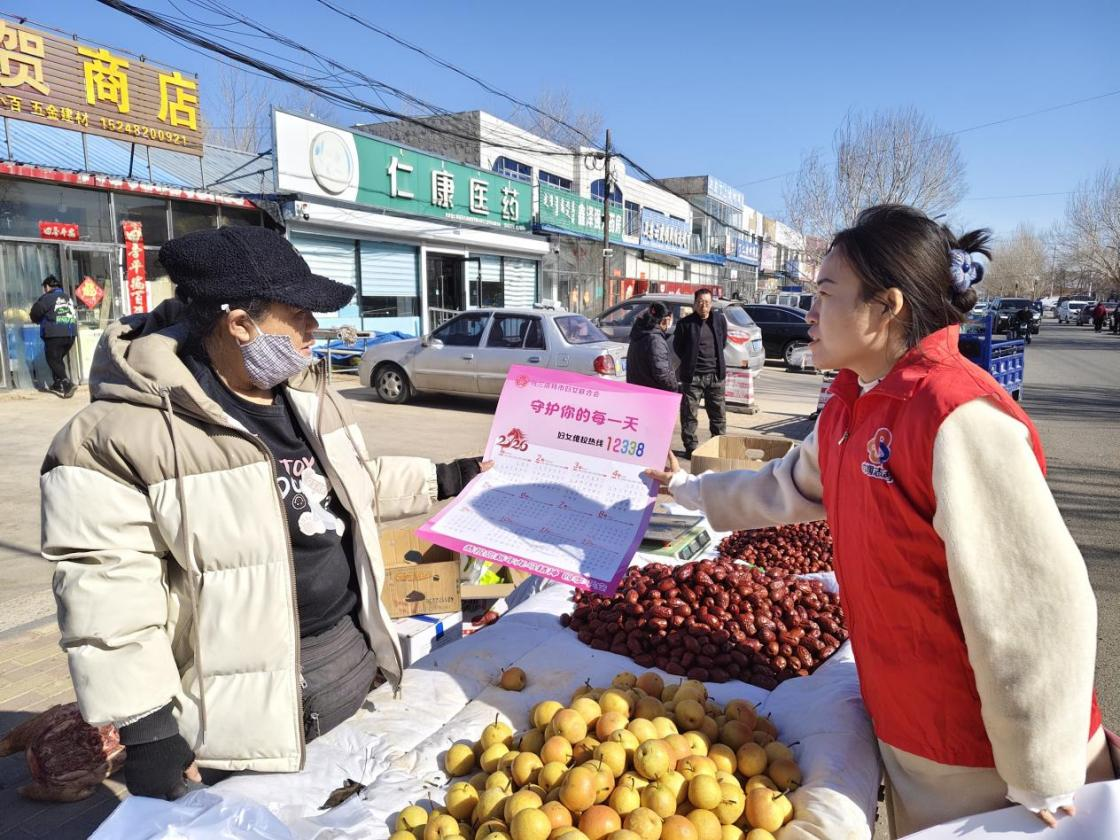 3月10日,乌兰浩特市斯力很现代农业园区巾帼志愿者走进热闹的斯力很“逢十”大集,将政策宣传单与实用挂历送到赶集群众手中,在升腾的烟火气中架起政策与民心的“连心桥”。